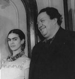 * Juli 6, 1907 + Juli 13, 1954 Frida Kahlo ist die dritte Tochter von Guillermo Kahlo und Matilde Calderón. Im Jahr 1913 erkrankt sie an der Krankheit Poliomyelitis, in deren Folge ihr rechtes Bein wesentlich dünner bleibt als das linke. In 1922 lernt sie den berühmten Muralisten Diego Rivera in der Schule "Escuela Nacional Preparatoria" kennen. Sie ist Schülerin und er hat den Auftrag ein Wandgemälde in der Aula der Schule anzufertigen.